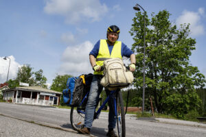 Kesän matkailijat ovat saapuneet myös eteläiseen Saloon. Osa päätyy tälle seudulle autolla, toinen julkisilla ja kolmas pyörällä. Viimeisimpään kategoriaan kuuluu Ruotsin Kristinehamnista kotoisin oleva Sven Hedgren, jonka Perkkari bongasi pyöräilemässä Perniön kaduilla.