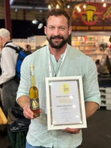Lepolan siidereitä on palkittu aikaisemminkin. Lepolan yrittäjä Aaron Brownie kuvattuna Nordic International Cider Awards -kilpailussa vuonna 2023.