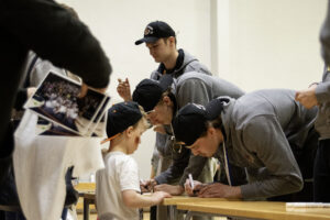 Jan Söderman kuuluu joukkueen innokkaimpiin kannattajiin. Nimikirjoituksia kirjoittamassa PeU:n Thomas Rönnholm, Patrik Poutiainen ja Alex Mäkikokko.