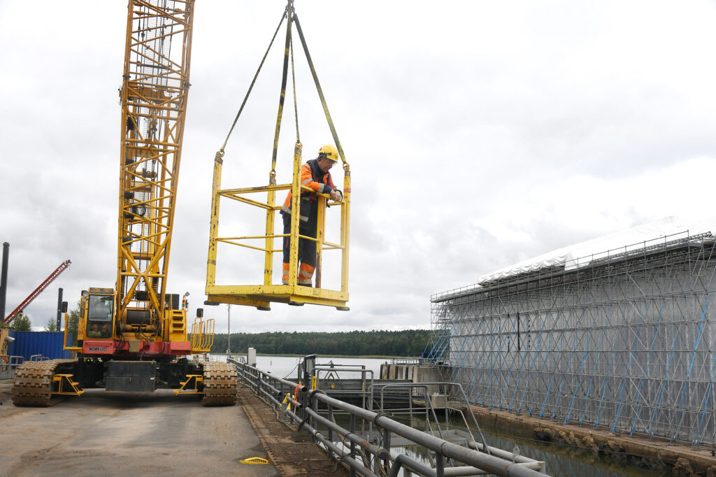 Uusi nosturi ei ole ihan uusi sekään vaan jo parikymmentä vuotta palvellut. Japanilaisen Kobelcon valmistama laite tuli Teijolle pääkaupunkiseudulta. Se nostaa 35 tonnia altaan keskelle ja kymmenen tonnia altaan ylikin.